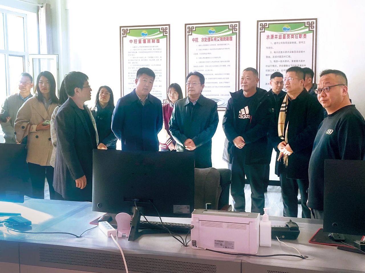 2月16日,中共呼和浩特市委二級巡視員、呼和浩特市社科聯(lián)副主席、呼和浩特市城市科學(xué)研究會副理事長李撫滄與碩達(dá)智水董事長頡春春、包頭首創(chuàng)水務(wù)制水廠景曉輝等一行13人赴杭錦后旗億源水務(wù)有限責(zé)任公司參觀考察,進(jìn)一步落實(shí)合作意向,深入了解合作政策及合作模式。億源水務(wù)董事長李哲宇、總經(jīng)理吳云飛及各部門負(fù)責(zé)人陪同參觀并出席座談。